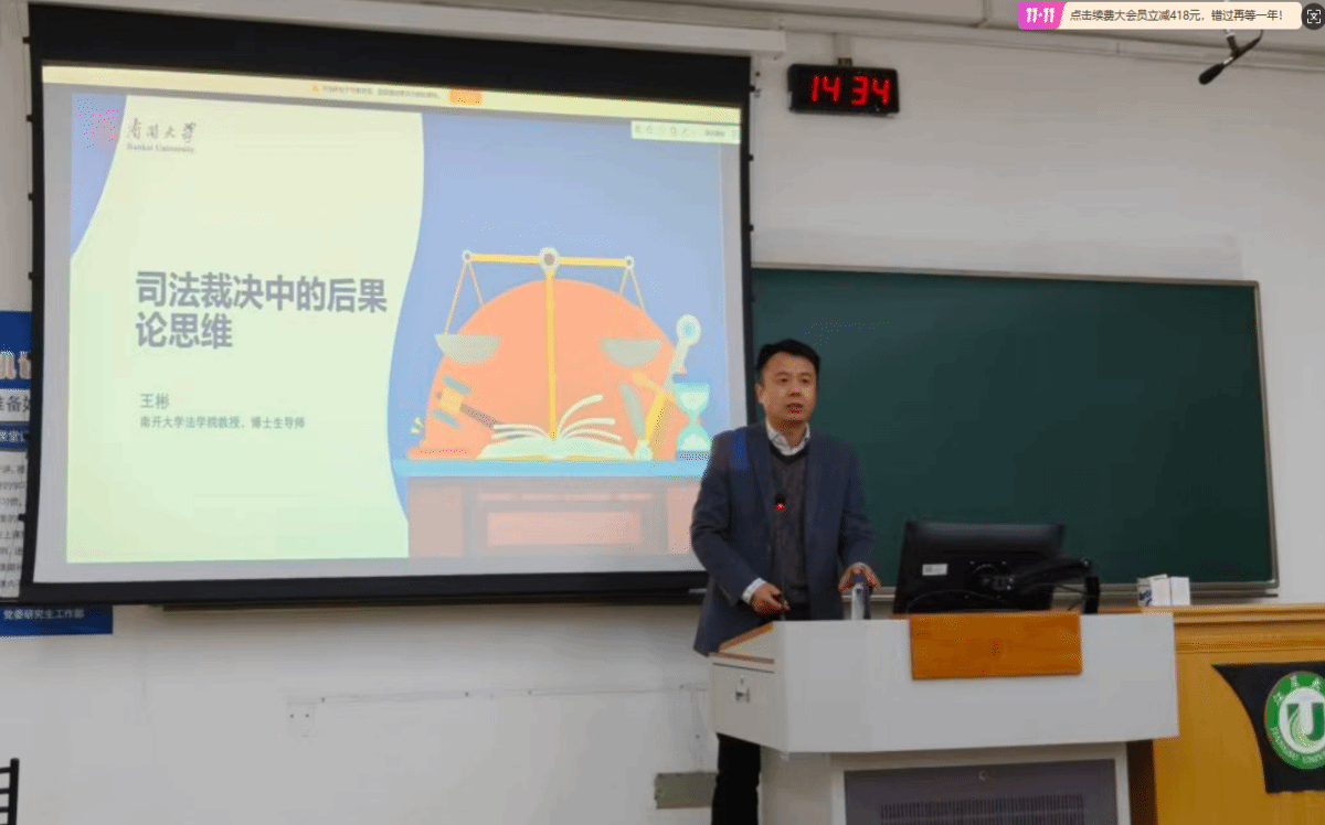 11月13日,南开大学法学院王彬教授应邀来我院讲学,讲座主题为“司法裁决中的后果论思维”。本次讲座由江苏大学法学院院长李炳烁教授主持,京口区人民法院政治部主任孙文、江苏大学法学院副院长牛玉兵教授,张健教授作为与谈人,60余名师生参加了本次讲座。
